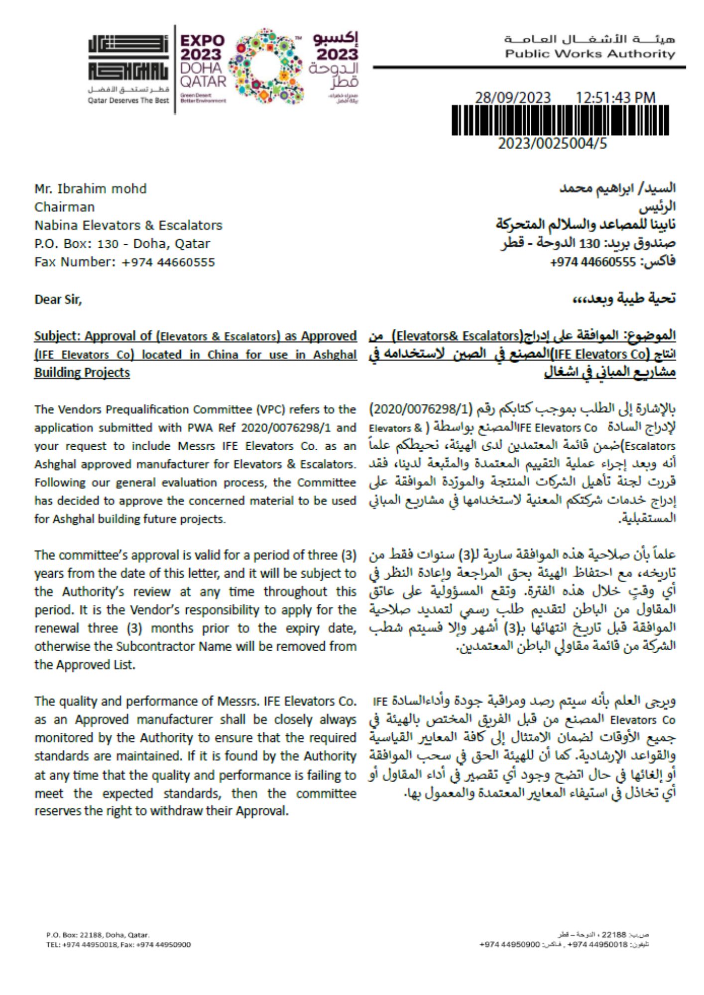 Phone: +974 4142404