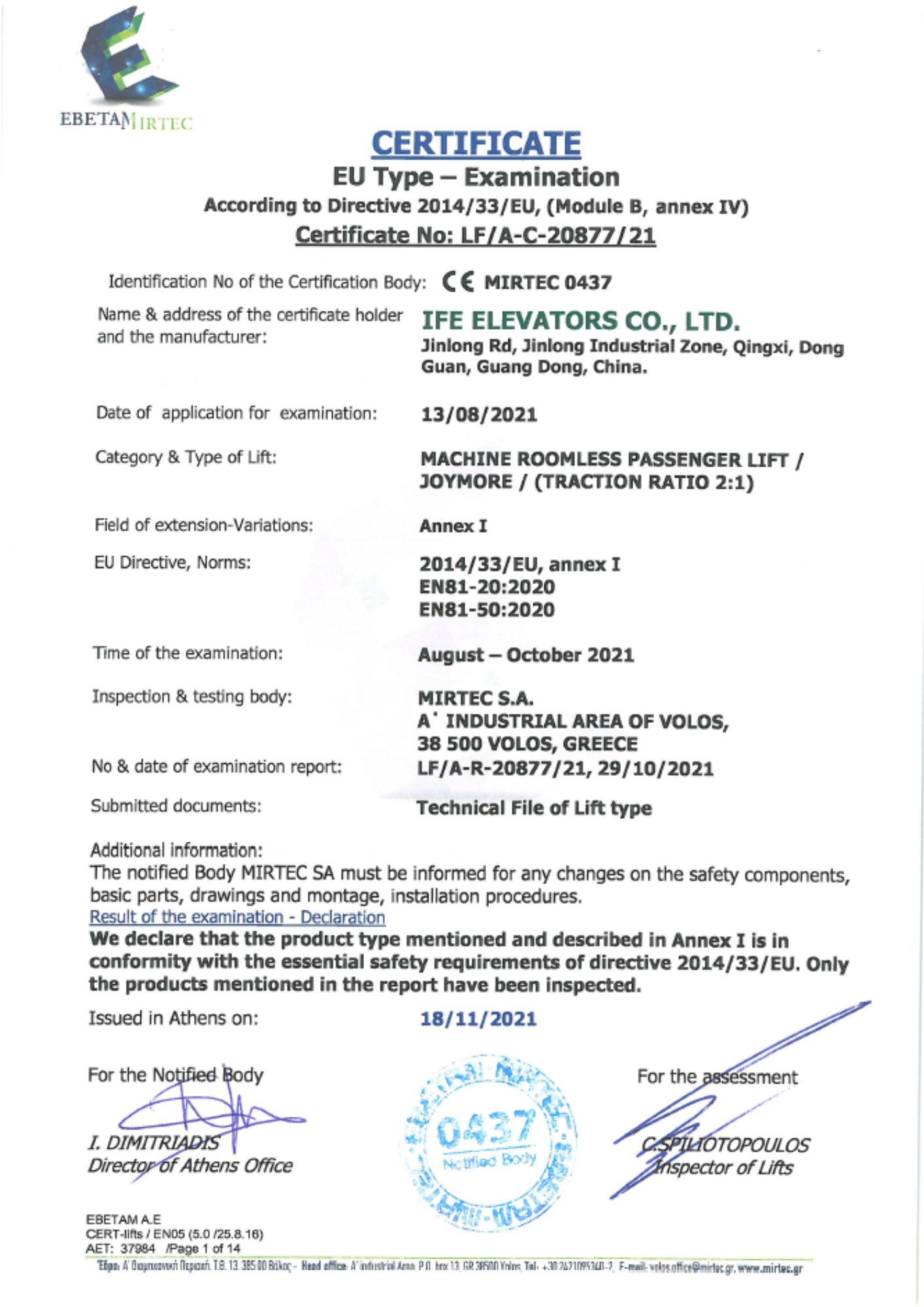 IFE products include residential elevators, panoramic elevators, high-speed elevators,